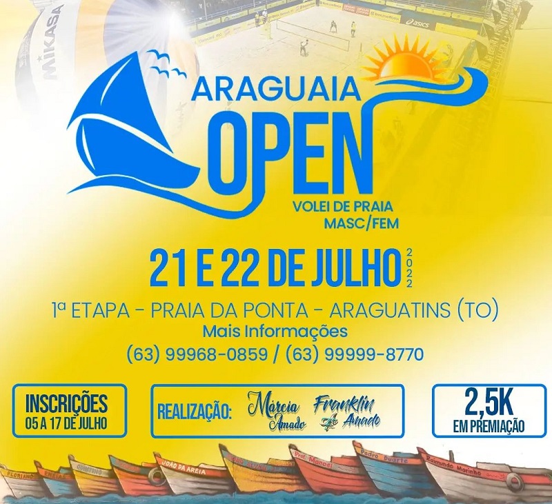 Alguns entusiastas de voleibol da cidade de Araguatins, no Bico do Papagaio, estão organizando para os dias 21 e 22 de julho, a realização do 1º Araguaia Open de Vôlei de Praia, nas categorias feminino e masculino.