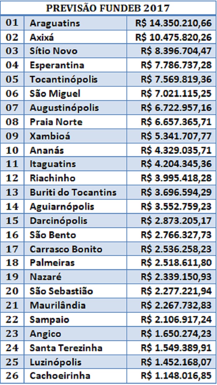 O Governo Federal também divulgou a estimativa anual do repasse do Fundo de Manutenção e Desenvolvimento da Educação Básica e de Valorização dos Profissionais da Educação (Fundeb) a ser feito aos municípios com base no número de alunos da educação infantil e do ensino fundamental, de acordo com os dados do último censo escolar.