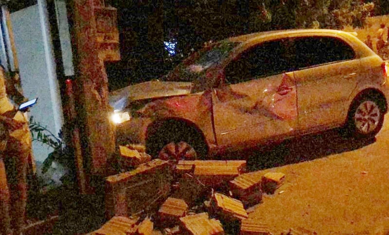 Ainda conforme o depoimento de Carlos, com a colisão, perdeu a direção do carro e por consequência se chocou com o muro de uma residência, derrubando parte dele.
