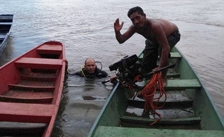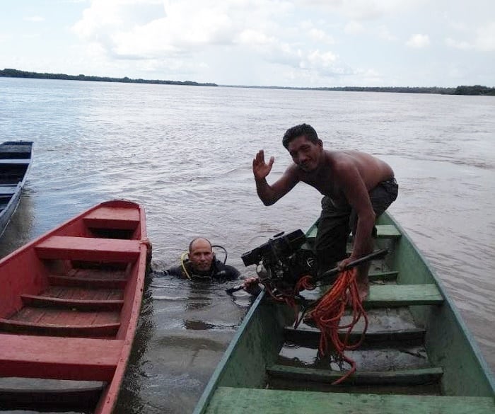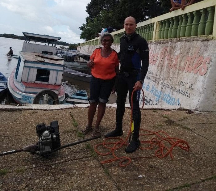 Os militares da equipe de mergulho 3ª Companhia do Corpo de Bombeiros, em Araguatins,  resgataram nesta segunda-feira, 12, um motor tipo rabeta modelo Matsuyama, 6.5 HP Gasolina, de uma embarcação que naufragou no Rio Araguaia, nas proximidades do Cais do Porto.