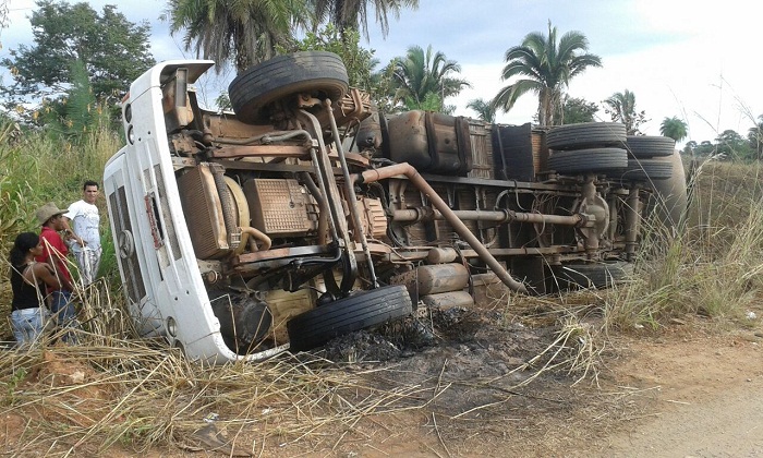 Na noite deste domingo, 7, o caminhão Mercedes Benz, placa de Varginha-MG, acabou tombando no trevo das rodovias TO-010 e TO-404, a 7 km de Araguatins. O veículo estava carregado com tubulação de PVC. O acidente aconteceu por volta das 20h.