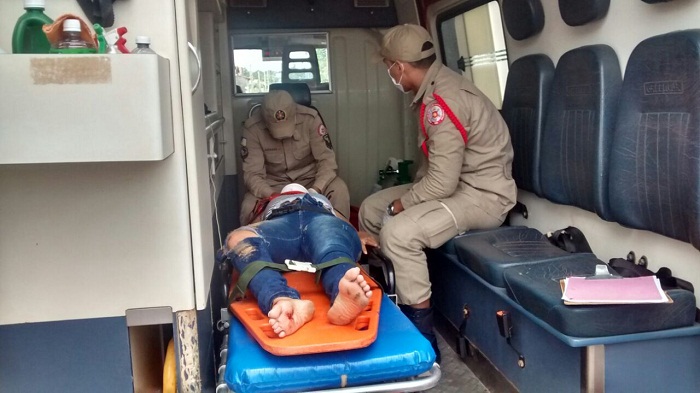 A vítima foi socorrida pelo resgate do Corpo de Bombeiros e levada para o Hospital Municipal com algumas escoriações no antebraço, joelho e um ferimento no pé direito.