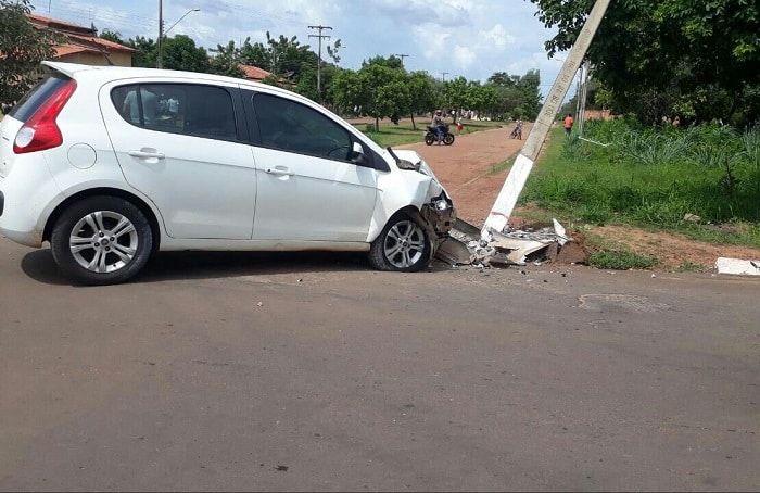 Um veículo Fiat Palio bateu em um poste, na tarde desta terça-feira (9), na Avenida Castelo Branco, na altura do bairro Nova Araguatins, cruzamento com Avenida Dom Orione. Segundo populares, o motorista perdeu o controle quando trafegada no sentido da Avenida Araguaia.