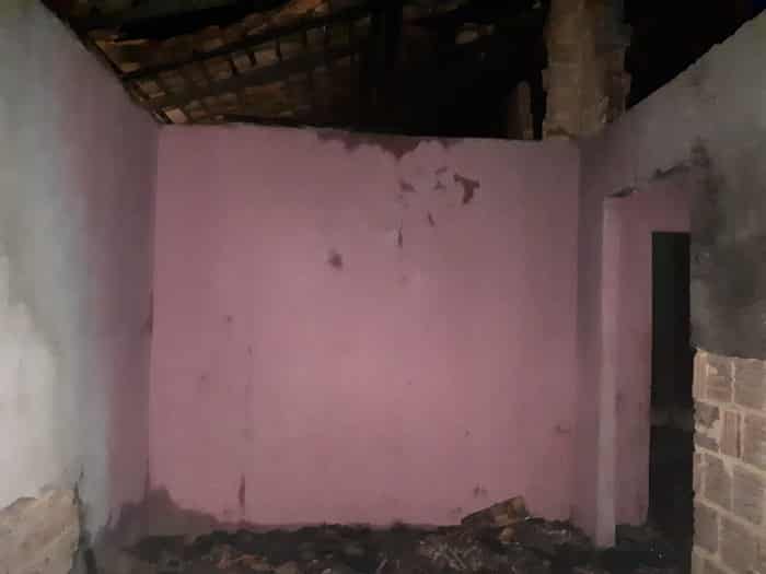 A residência possuía quatro cômodos, 2/4, sala e cozinha. As chamas atingiram a sala e principalmente um dos quartos consumindo os objetos e pertence da vítima. Após a extinção das chamas foi realizado o rescaldo no local.