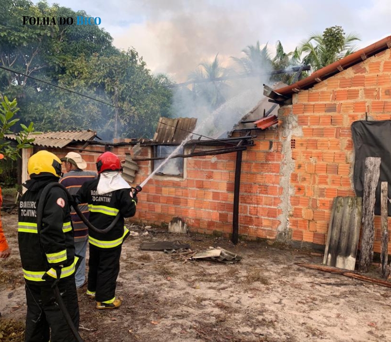 Um casa pegou fogo e vizinhos usaram água de um córrego para tentar controlar as chamas, na manhã deste sábado (1º), na zona rural de Araguatins, região do Bico do Papagaio. O Corpo de Bombeiros foi chamado, concluiu o combate e fez o rescaldo para evitar que mais focos surgissem.