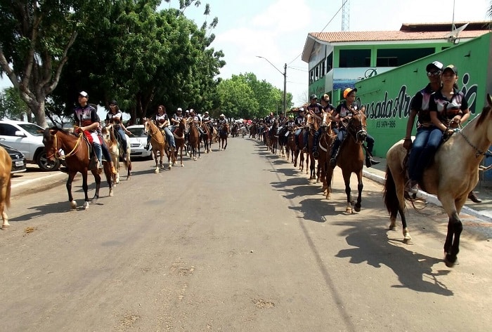Cavaleiros e amazonas, além das 15 comitivas, começaram a tomar as ruas de Araguatins, ainda por voltas das 5h, e se concentraram para o início do trajeto às 8h, na praça da rodoviária. De lá, os diversos grupos seguiram em direção a beira do rio, descendo pela Avenida Bartolomeu Bueno, até a Avenida Beira Rio (Pedro Ludovico), onde houve uma parada para os animais irem até o Rio Araguaia e se refrescarem. De lá, as comitivas subiram pela Avenida Floriano Peixoto, até a Avenida Dom Orione e tomaram a direção ao Parque de Exposições Agropecuária.