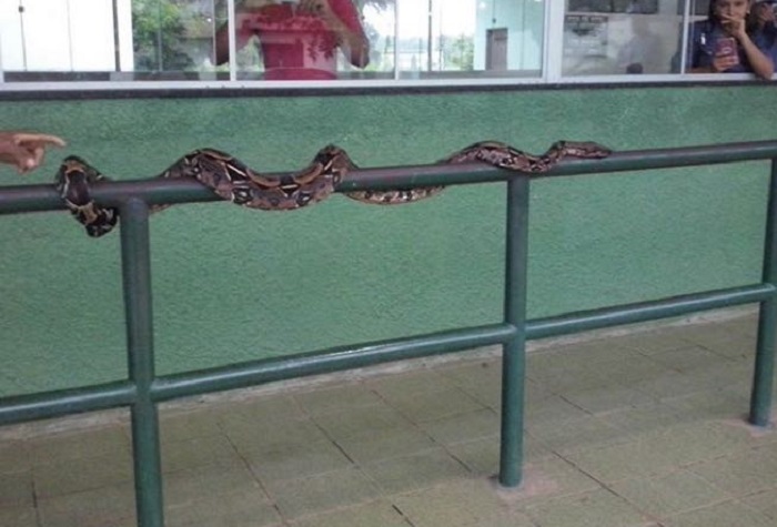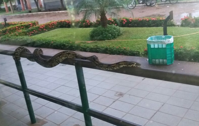 Uma cobra surpreendeu funcionários e estudantes do Instituto Federal de Educação, Ciências e Tecnologia, em Araguatins, na manhã deste sábado, 11. O animal de mais de dois metros apareceu no corrimão do refeitório do instituto.