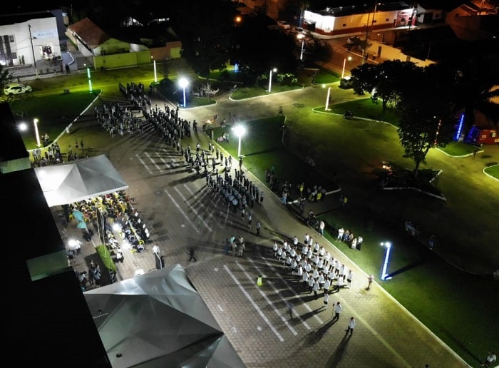O Colégio da Polícia Militar, Unidade de Araguatins, no Bico do Papagaio, promoveu na noite de sexta, 30, na Praça Anselmo Ferreira Guimarães, no centro da cidade, a solenidade anual de concessão de alamares e professores destaques.