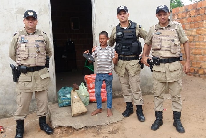 Além da cesta básica doada pelo comando do Batalhão, os policiais militares custearam também, sandália e outros objetos a fim de ajudarem o adolescente e sua família.
