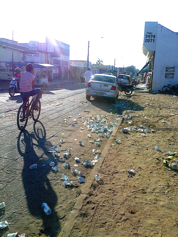 “Gostaríamos de registrar nossa indignação, sobre a falta de respeito e consideração, que os responsáveis pelo comício realizado ontem, na rua Siqueira Campos, não tiveram com os proprietários de lojas da área. Amanhecemos com nossas portas tomadas pelo lixo e muita sujeira, sem falar que não fomos comunicados previamente, prejudicando vendas e não respeitando nosso direito de ir e vir. Fecharam a rua no horário de pico”, disse um comerciante que continuou “Não temos nada contra a política e a seus membros, mais do mesmo modo que tem uma equipe para montar e desmontar a estrutura de palco e som, teriam que ter uma equipe de limpeza para deixar o local limpo”, finalizaram.