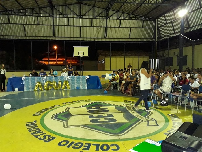 Durante a conferência estiveram presentes o secretário municipal de Meio Ambiente, Luiz Felipe Bezerra; a assessora de currículo, Vânia Ramos; a supervisora escolar, Faely Silva; a fiscal ambiental do Naturatins, Dayane Brandão, que contribuíram com informações relevantes sobre a necessidade de se propor soluções para os atuais problemas ambientais relacionados a poluição hídrica, tendo em vista que a escola é um importante veículo de discussão e disseminação de ideias. No decorrer do evento, que ocorreu na quadra coberta do Colégio, os alunos da Unidade Escolar apresentaram diversos trabalhos relacionados com a temática de preservação dos recursos hídricos. Finalizando as apresentações, foi realizada uma mesa redonda para discussões com os temas norteadores: Preservar e economizar os recursos hídricos.