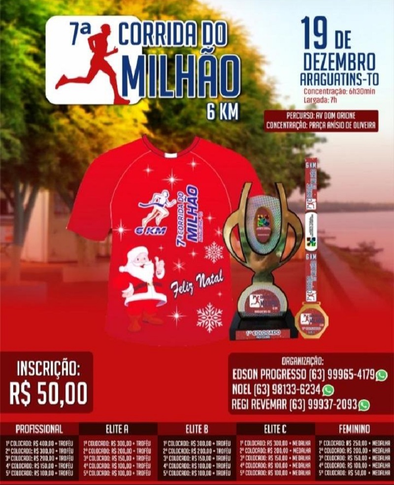 Acontece no próximo dia 19 de dezembro, na cidade de Araguatins, no Bico do Papagaio, a “Corrida do Milhão”, evento de atletismo com intuito de proporcionar a prática de atividade física e incentivo ao esporte.