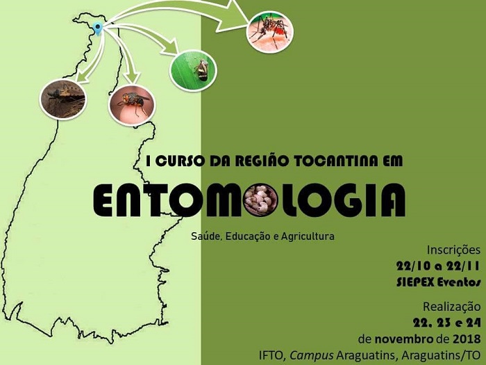 É com grande satisfação que o Instituto Federal de Educação, Ciência e Tecnologia do Tocantins, Campus Araguatins promove o I Curso da região Tocantina em Entomologia. Com o tema “Saúde, Educação e Agricultura”, está edição irá proporcionar uma oportunidade única para a convivência, discussão, inovação, colaboração e troca de experiências científicas.