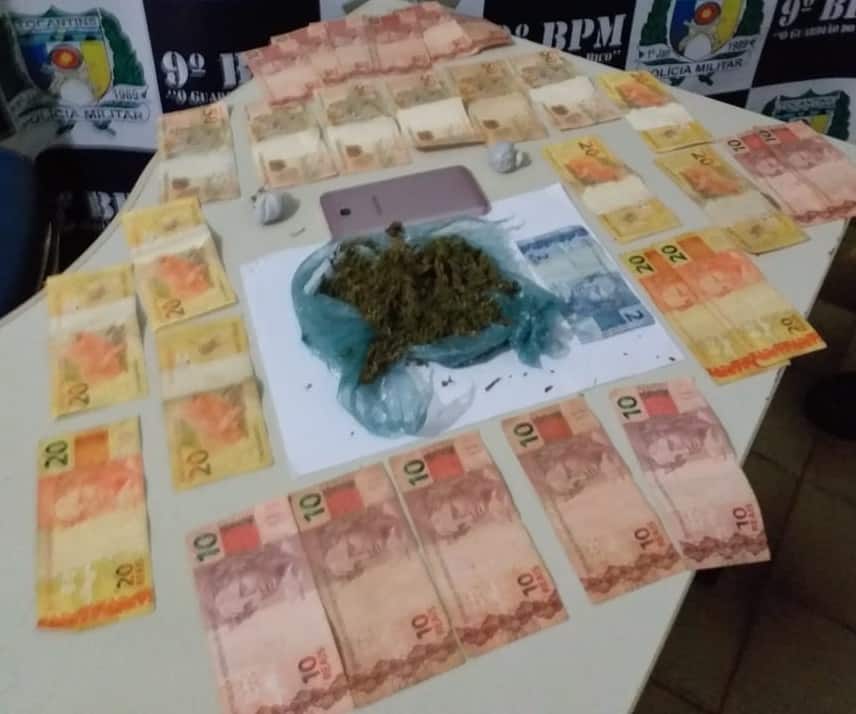 Ao serem abordados foram encontradas em poder dos autores 03 porções análoga a “maconha”, escondidas dentro de um capacete; 02 aparelhos smartphones, sendo que um deles havia ocorrência de furto/roubo e uma quantia de R$ 602,00 em dinheiro. Os acusados juntamente com todo material aprendido foi apresentado na Delegacia de Polícia local para os procedimentos cabíveis.