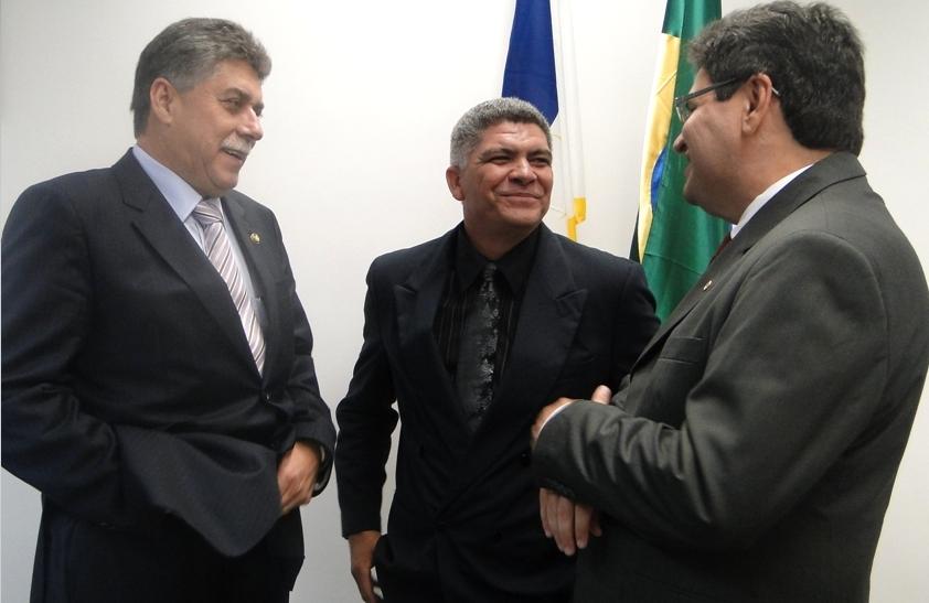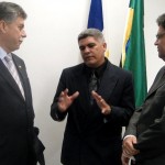 Articulando em Brasília na tentativa de atrair novos recursos para aplicação em Araguatins, o presidente da Câmara Municipal, vereador Cláudio Santana, se reuniu com os parlamentares e presidentes do PR e PMDB, senador João Ribeiro e deputado federal Júnior Coimbra para solicitar apoio na liberação de investimentos. A reunião aconteceu no gabinete do senador João Ribeiro.