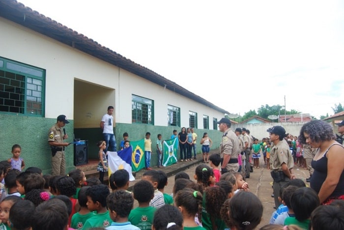 Dessa vez foi a escola municipal Professora Maria de Lourdes. Cerca de 180 alunos participaram da solenidade que contou com o cântico do Hino Nacional Brasileiro em continência às bandeiras do Brasil, Estado do Tocantins e do município. Os policiais militares estiveram ao comando do major Valdeonne. A continência aos símbolos nacionais contou com ainda com o uso de espada por parte dos militares oficiais.