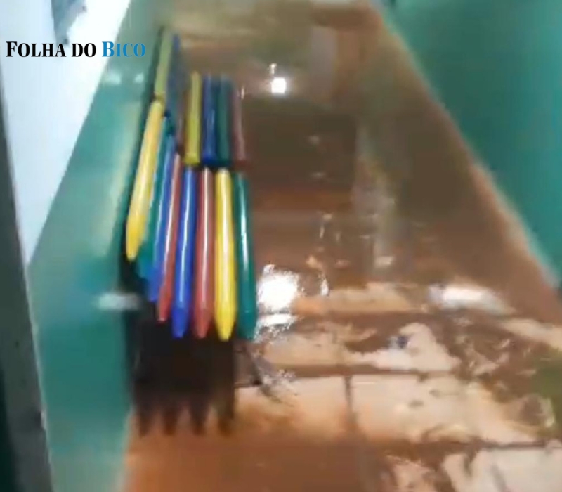 O temporal que ocorreu durante toda a madrugada não poupou a instituição de ensino, que teve suas dependências invadidas pela água da chuva, acompanhada de lama, que se espalhou por todo o prédio, causando transtornos e danos materiais.