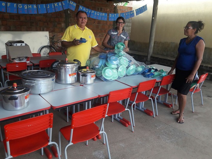 A Secretaria de Educação e Cultura (SEMEC), realizou a entrega de utensílios para a merenda escolar e novos mobiliários para a cozinha da extensão da escola municipal Vanor da Costa Parreão. A diretora Valdanha, servidores, conselheiros da Alimentação Escolar e o superintendente Educacional Santana participaram da entrega.