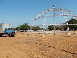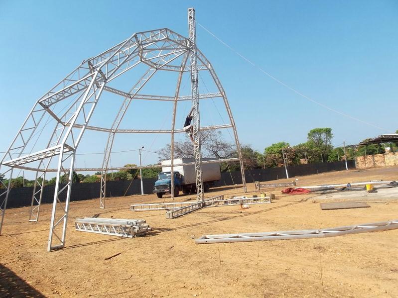 A estrutura já esta sendo montada e a perspectiva é que até a noite de sexta-feira esteja toda pronta.
