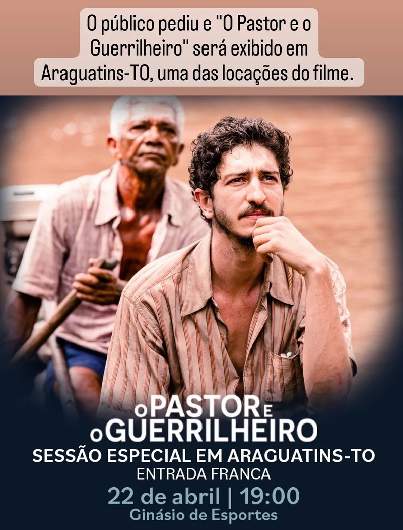 ARAGUATINS: Filme “O pastor e o guerrilheiro” terá sessão especial e gratuita no próximo sábado, 22