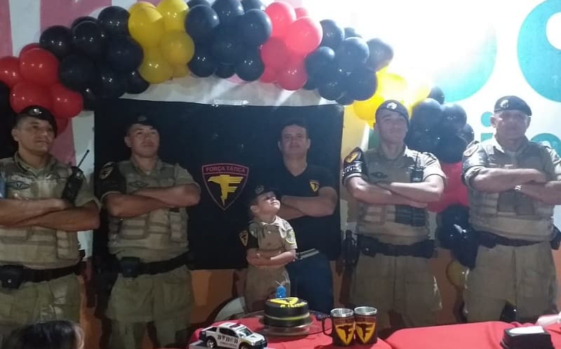 A equipe de Força Tática (FT) do 9º Batalhão de Polícia Militar (9º BPM) realizaram uma grande surpresa de aniversário ao pequeno Pedro Isaque de apenas 3 anos de idade, na noite desta terça-feira, 11, no Setor Sossego em Araguatins. A criança é fã da Força Tática, e a surpresa foi um presente organizado pelos pais, Josué Rodrigues da Costa Filho e Ludmila Maria, que também admiram o trabalho da PM.