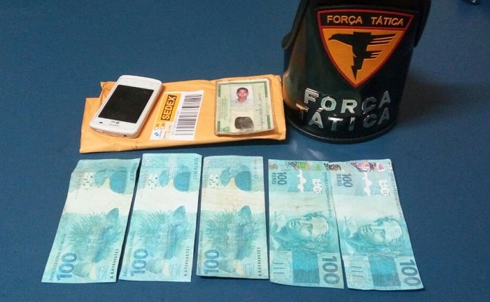 Em apoio ao serviço de inteligência do 9°BPM, a equipe de Força Tática abordou por volta das 23h, desta quarta-feira, 12, Fagner Costa de Sousa, e em sua posse foram encontradas três notas falsificadas de R$ 100,00.