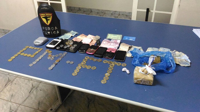 Com Gilson foi encontrado 335 gramas de maconha, 37 gramas de crack, balança de precisão, 8 celulares e R$ 217,20 em dinheiro.