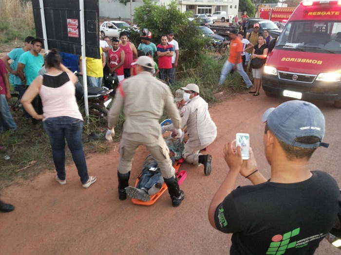 Um taxista de pré-nome Ruan, bateu seu veículo Volkswagen Gol, em uma moto conduzida pelo pedreiro conhecido como Divino, que foi arremessado na pista, no final da tarde desta sexta-feira, 10. Segundo informações de testemunha, o motorista do Gol conduzia o veículo em alta velocidade, sem respeitar a sinalização e quebra-molas.