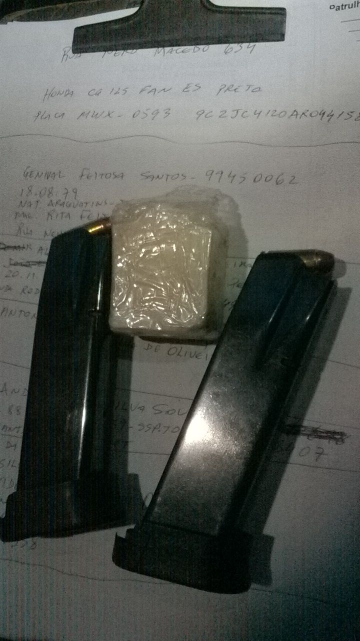 No local do crime foram encontrados aproximadamente 100g de crack, 2 carregadores e 24 munições.