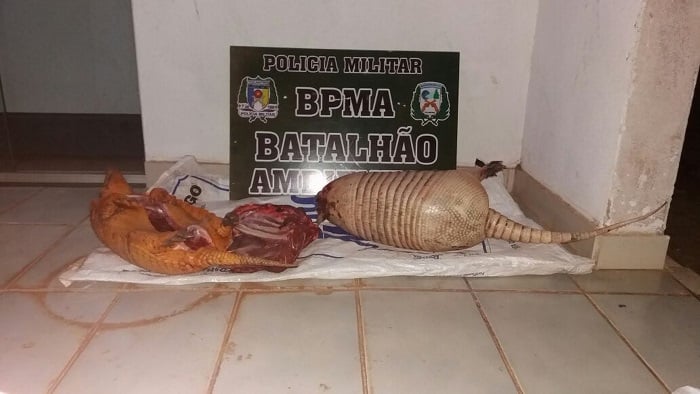 Um homem foi multado em R$ 1,5 mil por crime ambiental. Ele estava transportando dois tatus e aproximadamente 1 kg de carne de veado em um ônibus. O flagrante foi feito em Araguatins, na madrugada desta quarta-feira (11), por volta das 2h.