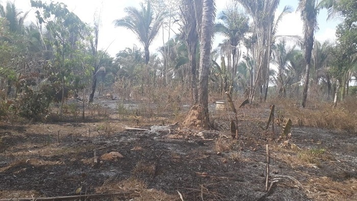Plantações de laranja, jaca e abacate ficam destruídas. Os moradores não sabem como o incêndio começou.