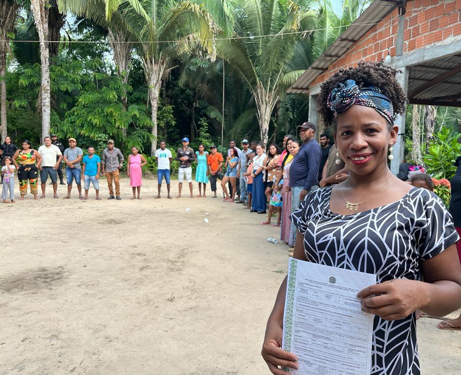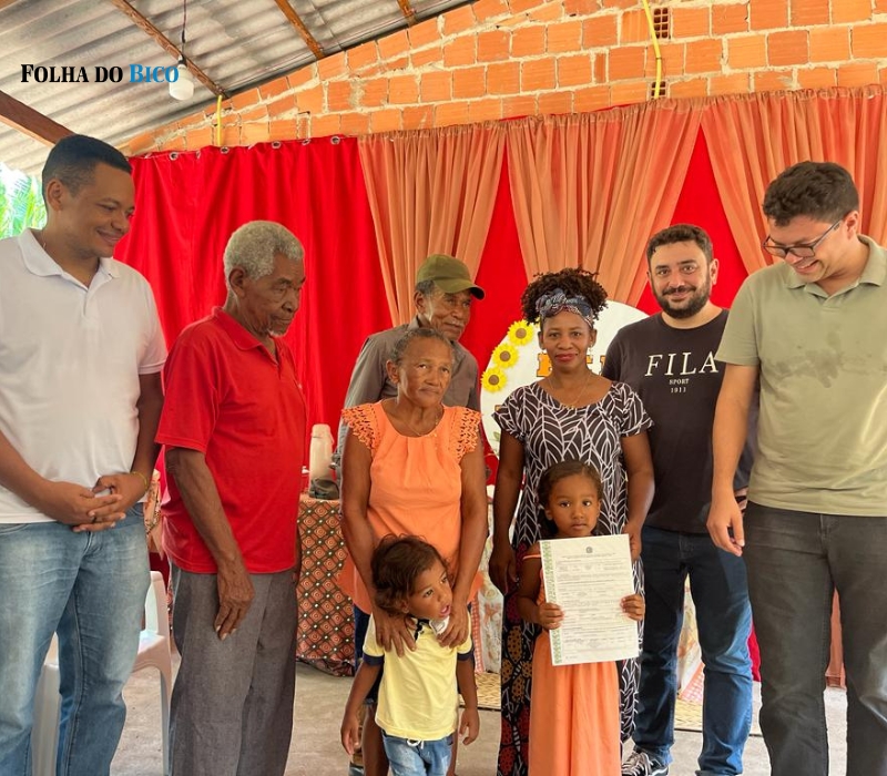 O Título de Concessão de Direito de Uso sobre a Terra, que foi entregue pelo presidente Luiz Inácio Lula da Silva no último dia 20 de novembro no Palácio do Planalto, em Brasília (DF), agora chega ao quilombo. O documento, que informa que a comunidade quilombola é a única responsável legal pelo território, foi entregue por Edmundo Rodrigues Costa, superintendente do Instituto Nacional de Colonização e Reforma Agrária (INCRA) do Tocantins nas mãos das famílias.