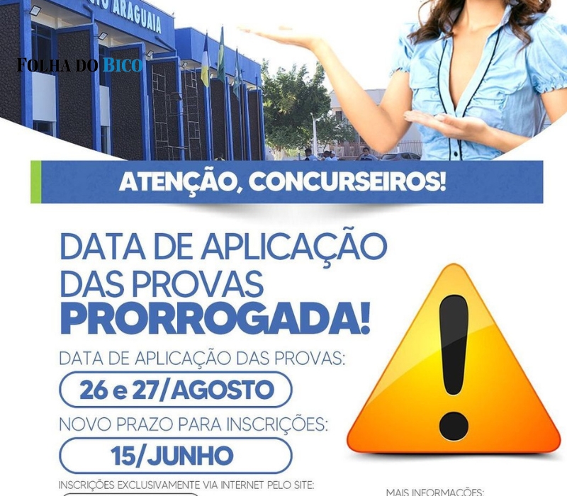 As inscrições no concurso da Prefeitura de Araguatins, no Bico do Papagaio, que oferece 162 vagas, foram prorrogadas. Os interessados podem se inscrever pelo site da organizadora do certame clicando AQUI.