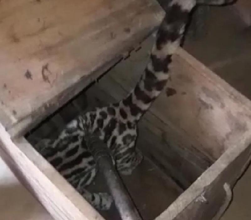 Uma jaguatirica foi capturada nesta quinta-feira (13) após entrara em uma casa e se esconder em cima de um armário. O caso foi registrado na Vila Cidinha em Araguatins, na região do Bico do Papagaio.