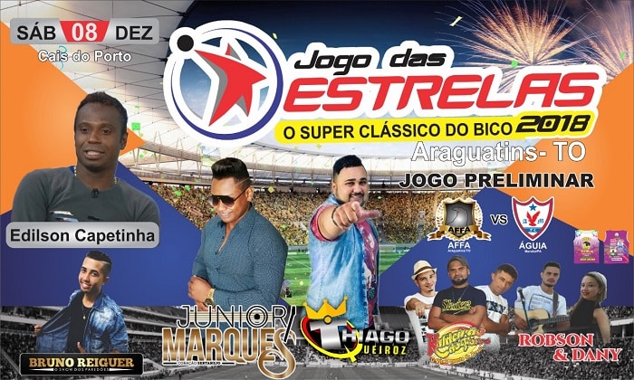 A nona edição do Jogo das Estrelas que acontecerá no próximo sábado, 8, em Araguatins, contará com atrações nacionais. Além da presença do ex-jogador da Seleção Brasileira e pentacampeão, Edílson Capetinha, o evento também contará com a participação do jogador Welington, do Paysandu Esporte Clube de Belém e do time Águia de Marabá, que fará o jogo de abertura.