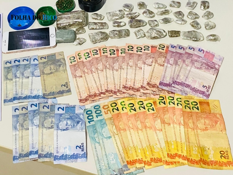 Ao chegarem ao local, foram informados pela avó do suspeito que ele estava em um estúdio de tatuagem. No estúdio foram localizados mais dois invólucros de maconha, R$ 600 em dinheiro e um celular iPhone. O suspeito afirmou ainda ter mais entorpecentes em sua residência, onde foram encontradas outras porções da droga.