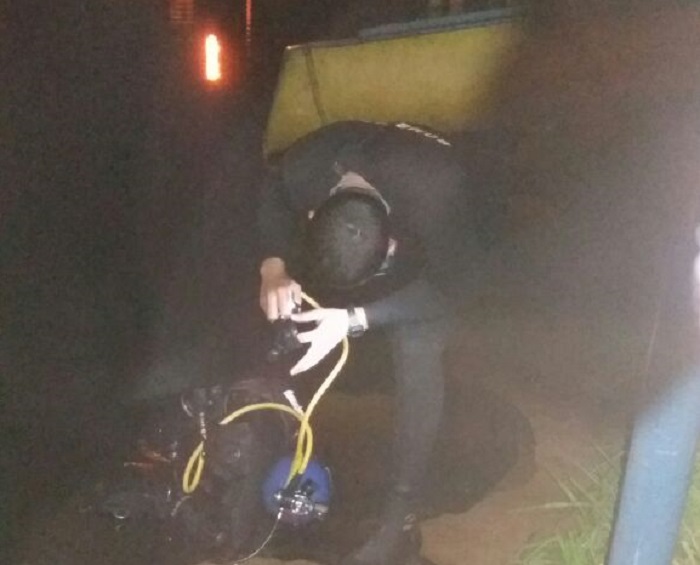 No local, a equipe de mergulhadores da 3º Companhia dos Bombeiros iniciou as buscas de mergulho noturno utilizando equipamentos de respiração subaquática e após 40 minutos de buscas submersas com baixa visibilidade, o corpo foi localizado a 4 metros de profundidade, a uma distância aproximada de 15 metros da margem por volta das 20h30.