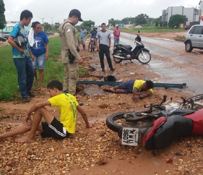 Os jovens tiveram escoriações e foram levados pelo resgate do Corpo de Bombeiros para o Hospital Municipal de Araguatins. O motorista do carro não se feriu.