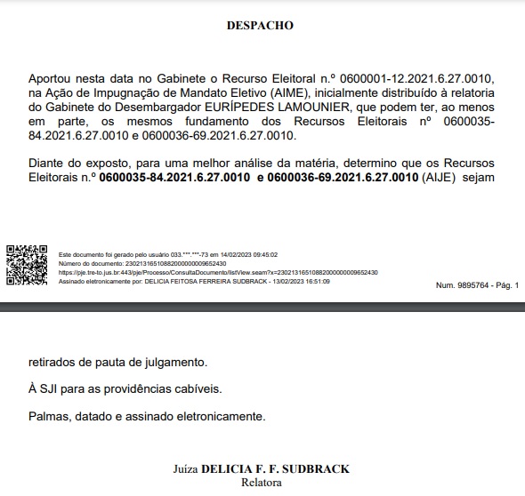 O TRE informou a Folha do Bico que a retirada se deve a entrada um outro processo com mesmo fundamento de fato. Neste caso, o processo é retirado para uma melhor análise.