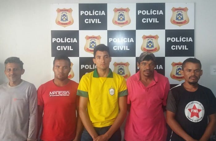 Ananias e Valdemar são os dois primeiros da direita para esquerda. Os outros três foram ouvidos na delegacia por constrangimento ilegal.