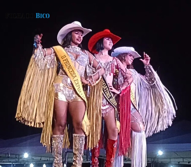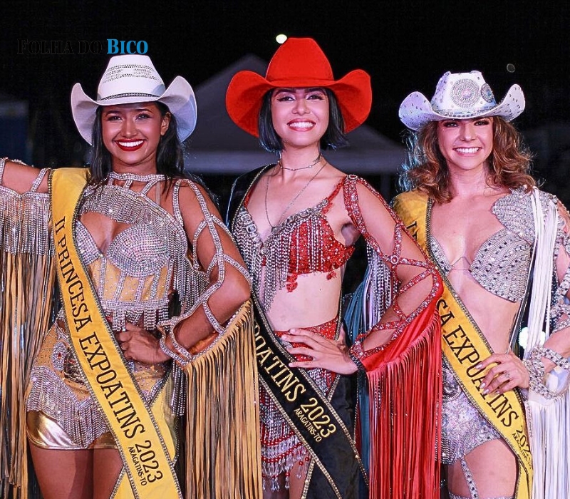 A primeira princesa da EXPOATINS 2023 foi a jovem Marta Brito, de 29 anos, e a segunda princesa foi a jovem Lene Lopes, de 22 anos.