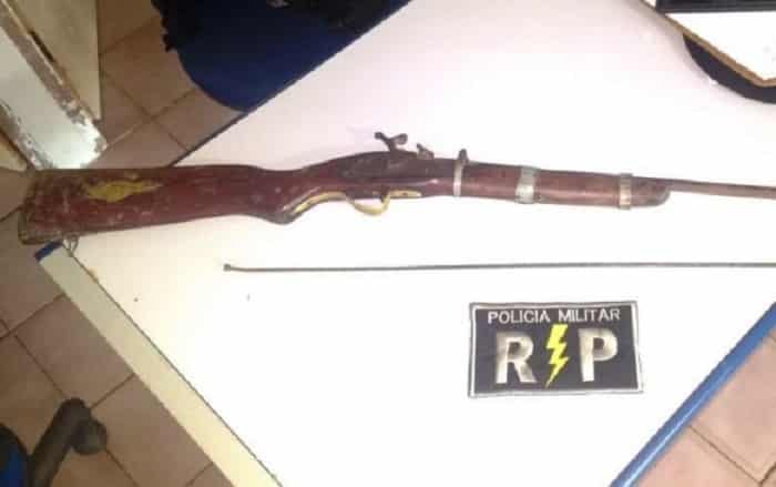 O autor estava embriagado e na sua residência a PM localizou uma espingarda de fabricação artesanal (bate-bucha). A arma e o autor foram entregues na Central de Flagrantes onde foi autuado. (Ascom 9 BPM)