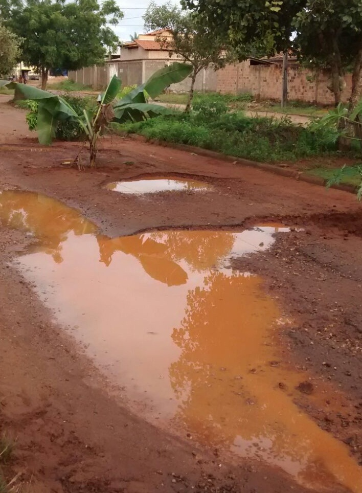 Os moradores reclamam da buraqueira provocada pelas chuvas e as poças de água que se acumulam prejudicando o tráfego.