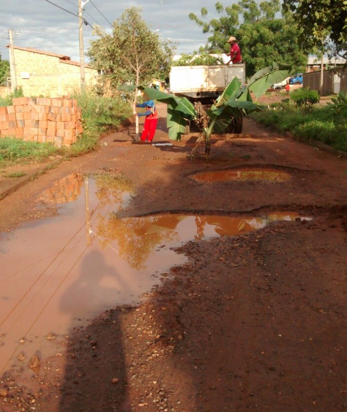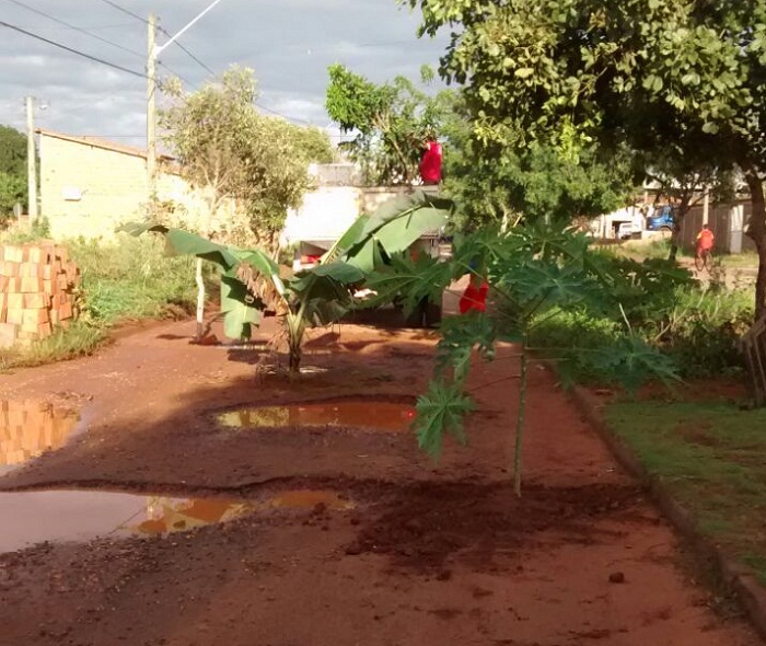 Moradores do bairro Nova Araguatins, fizeram um protesto bem humorado. Contrariados com a situação das ruas no setor, um grupo resolveu ironizar e plantar bananeiras e mamoeiros na avenida 13 de Outubro.