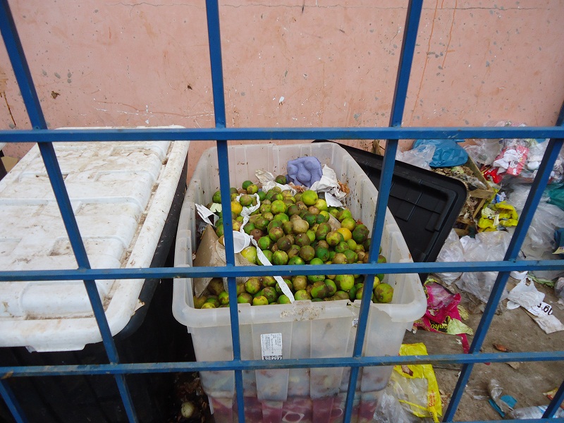 O grupo disse que a situação na área de descarte de lixo do estabelecimento, que fica na lateral do prédio, voltado para a rua 7 de setembro, se tornou um verdadeiro “minilixão” a céu aberto, e tudo acontece sob vistas grossas da Vigilância Sanitária, que não toma providências. O grupo disse que durante o dia, os funcionários do estabelecimento vão juntando restos de frutas, verduras e pelancas de carnes na calçada, dentro de caixas plásticas furadas, que facilitam o vazamento de um líquido de cor escura e odor nauseante, devido a decomposição dos resíduos. Diversas caixas de papelão inutilizadas também são jogadas no local.