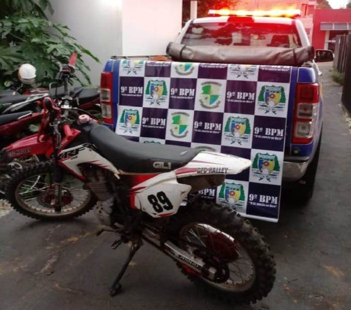 A motocicleta e o autor foram conduzidos para a Delegacia de Polícia onde foi entregue ao delegado de plantão para as medidas cabíveis. (Ascom 9 BPM)
