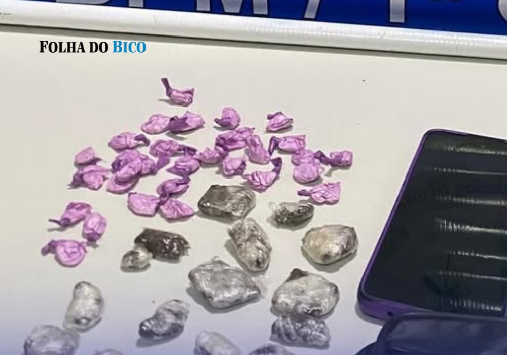 Durante a abordagem, a suspeita entregou espontaneamente três papelotes de maconha. No entanto, buscas realizadas no terreno onde ela havia estado revelaram uma pochete contendo o restante das drogas: 17 papelotes de maconha, totalizando 28 gramas, e 30 papelotes de cocaína, somando 13 gramas. O material estava embalado e pronto para comercialização, segundo a PM.