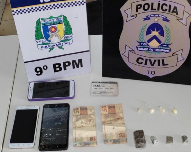 Uma mulher suspeita de envolvimento com o tráfico de drogas, foi presa pela Polícia Militar, na tarde de terça-feira, 05, no bairro Vila Miranda em Araguatins, norte do Estado. Na residência onde a mulher, 25 anos, juntamente com um homem, 21 anos, usavam para comercializar o entorpecente, a Polícia apreendeu porções de substâncias análogas à maconha e crack, três aparelhos celulares sem procedência e R$ 100,00 reais em espécie.