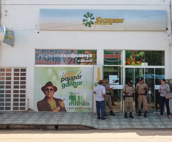 Quando a PM recebeu a ligação feita pela agência do Sicredi de que a empresa bancária local estava sendo assaltada, deslocou de imediato, fechando as ruas, as adjacências do local e reforçou com bloqueio às entradas e saídas da cidade e região, mas, os criminosos, dado ao fator tempo, em relação a informação que chegou à PM, os autores já haviam deixado o interior do banco e empreendido fuga em direção não identificada.