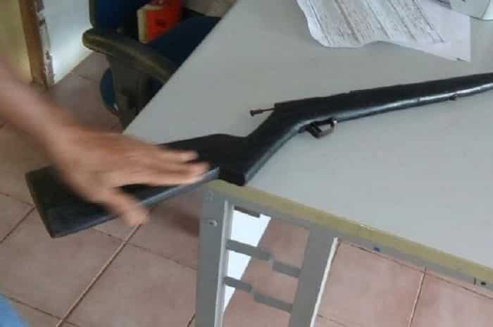 Na manhã desta quarta-feira, 07, a PM realizou a apreensão de uma espingarda de fabricação artesanal escondida nas proximidades de uma fazenda no município de Araguatins. Os policiais militares chegaram até a arma durante levantamento feito pelo serviço de inteligência do 9º Batalhão nas proximidades daquela propriedade.
